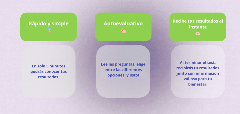 Al terminar el test recibirás tus resultados junto con información valiosa para tu bienestar.